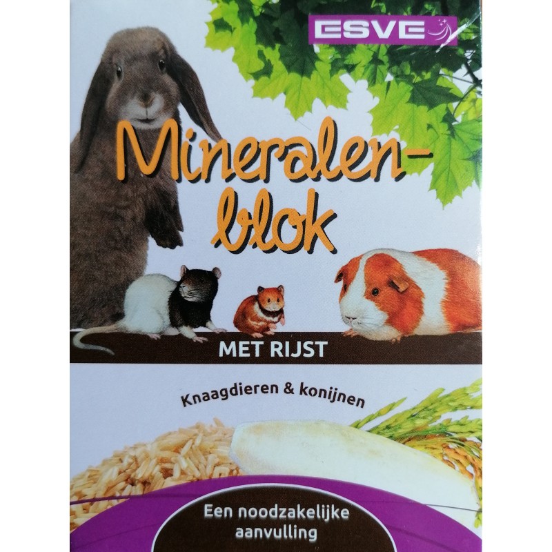 ESVE mineralinis blokas yra papildomas delikatesas. Mineralinis blokas patenkina natūralų graužimo poreikį, padeda stiprinti kaulų struktūrą, padeda kailiui augti gražiam ir sveikam.