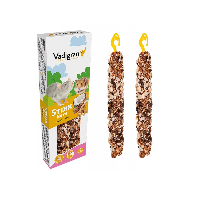 Stixx yra natūralus keptas užkandis graužikams: įvairios sudedamosios dalys yra keptos skaniame biskvite. Lengva pritvirtinti, dėl plastikinio laikiklio. Medinė šerdis suteikia papildomą skanėsto tvirtumą. Medinė šerdis yra saugi ir gera priemonė graužiko dantims valyti. Įdėkite Stixx į narvą, kad Jūsų augintinis galėtų mėgautis aktyviu gyvenimu. Be cukraus, dažiklių ar konservantų.