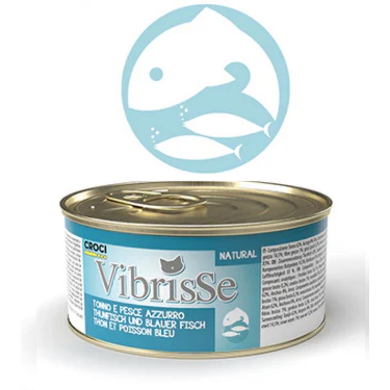 VIBRISSE konservai — visavertis pašaras suaugusioms katėms su TUNU ir MELSVAŽUVĖMIS.