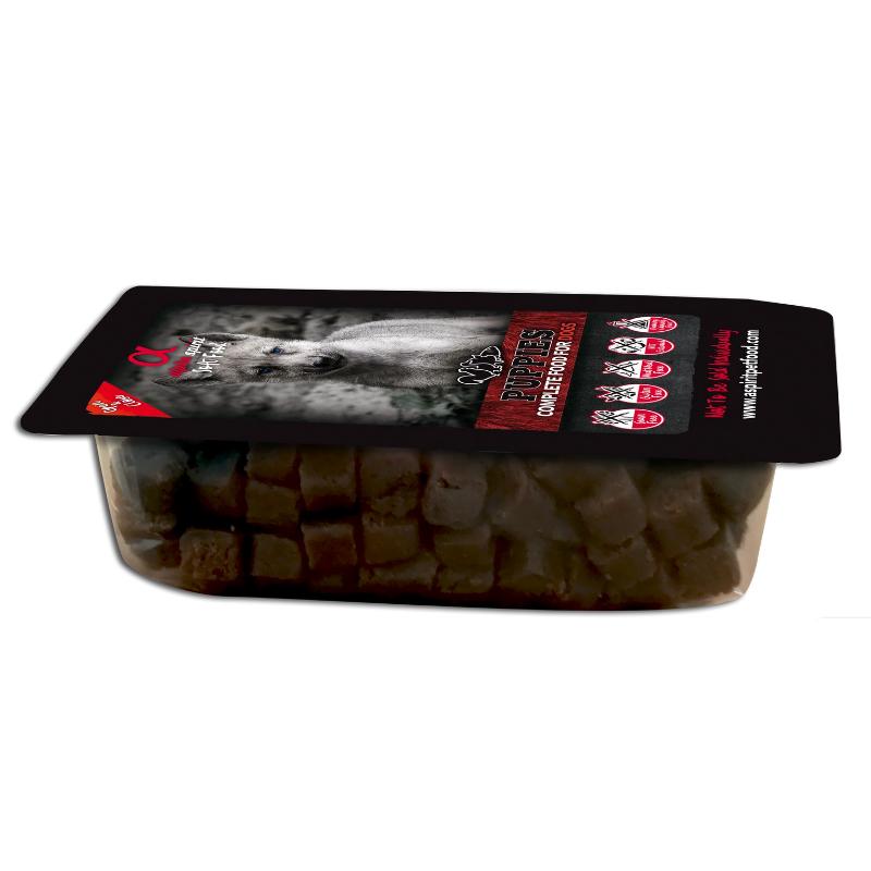 Visavertis pašaras jauniems šuniukams su šviežia mėsa ir šviežia žuvimi.