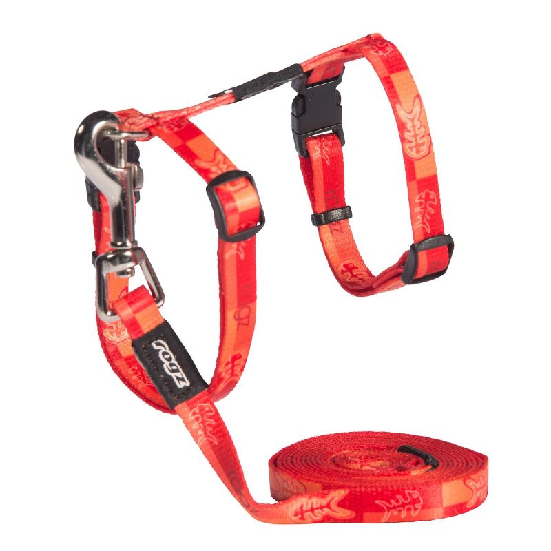 ROGZ raudonas komplektas petnešos+pavadėlis katei