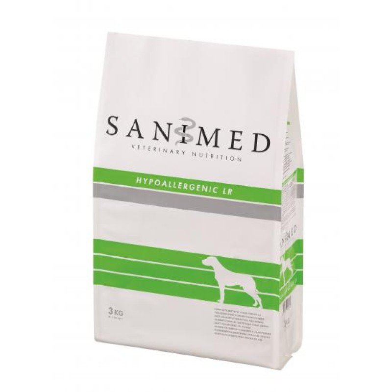 Šėrimo nuorodos: duokite šį dietinį pašarą kaip vienintelį pašaro šaltinį arba derinkite šį dietinį pašarą su SANIMED Hypoallergenic LR dešra. Vadovaukitės šėrimo instrukcijomis ir pritaikykite pašaro kiekį, jei reikia, kad palaikytumėte tinkamą savo šuns kūno svorį. Pašaro dienos norma turėtų būti padalinta į du ar daugiau šėrimų per dieną. Rekomenduojamas šėrimo laikas yra 3-8 savaitės. Jei netoleravimo simptomai išnyksta, šiuo pašaru gyvūną galima šerti iki vienerių metų. Reguliariai stebėkite savo šuns būklę. Visada turi būti geriamo vandens. eguliariai valykite pašaro ir vandens dubenėlius. Prieš naudojant ir pratęsiant naudojimo laiką rekomenduojama pasitarti su veterinarijos gydytoju. Parduodamas tik paskyrus veterinarijos gydytojui.