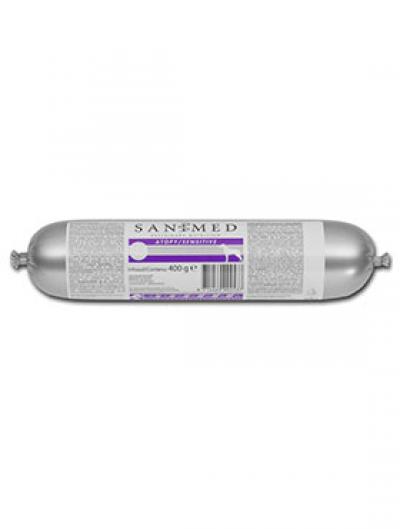 Šėrimo nuorodos: duokite šį dietinį pašarą kaip vienintelį pašaro šaltinį arba derinkite šį dietinį pašarą su SANIMED Skin/Sensitive visaverčiu sausu pašaru. Vadovaukitės rekomenduojamomis šėrimo normomis ir pritaikykite pašaro dozę, jei reikia, kad palaikytumėte tinkamą savo šuns kūno svorį. Pašaro dienos norma turėtų būti padalinta į du ar daugiau šėrimų per dieną. Rekomenduojamas šėrimo laikas esant pašaro sukeltai alergijai yra 3-8 savaitės. Jei pašaro netoleravimo požymiai išnyksta šį pašarą galima naudoti neribotai. Kai pašaras duodamas stiprinti odos funkcijų atsistatymą dermatozės ir/ar padidinto plaukų netekimo atveju, rekomenduojamas šėrimo šia dieta laikas yra iki 2 mėnesių. Reguliariai stebėkite savo šuns būklę. Visada turi būti vandens. Prieš naudojant ir pratęsiant naudojimo laiką rekomenduojama pasitarti su veterinarijos gydytoju.