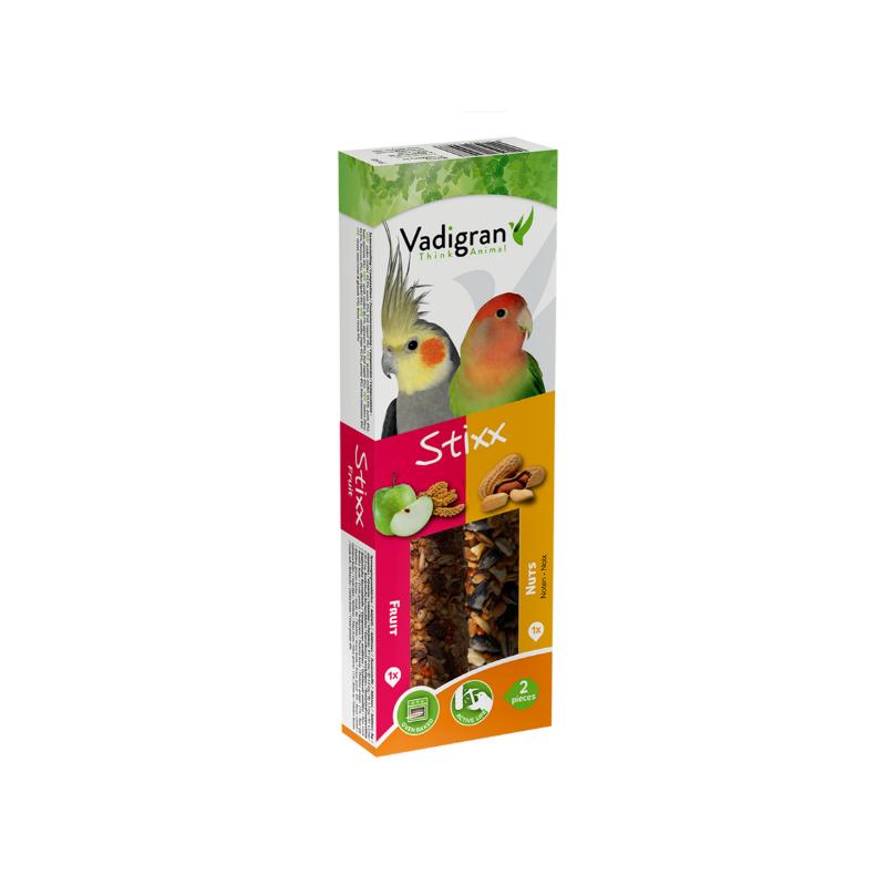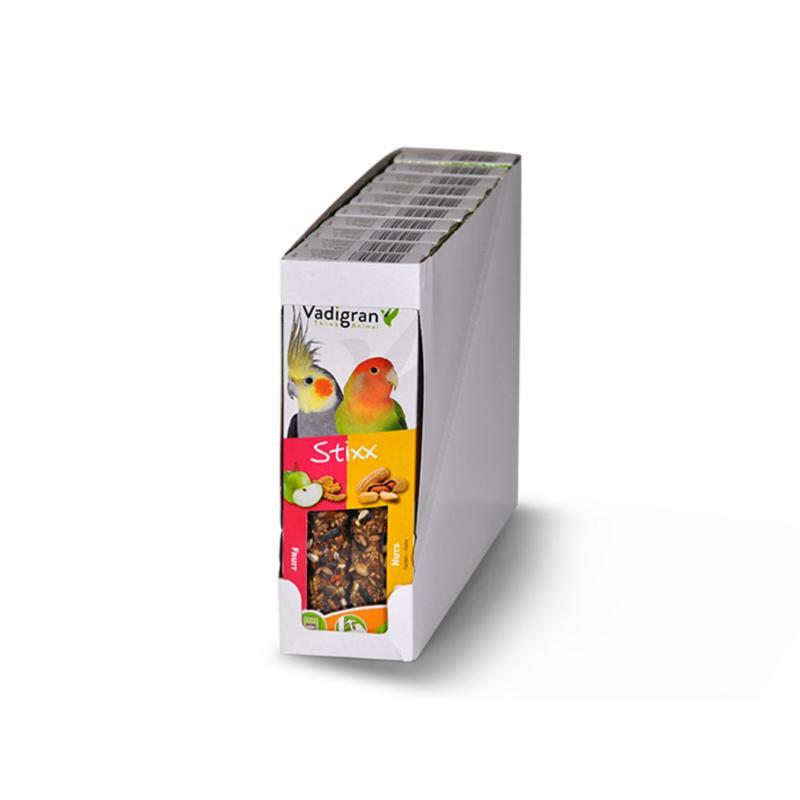 Stixx yra natūralus keptas užkandis paukščiams: įvairios sudedamosios dalys yra keptos skaniame biskvite. Lengva pritvirtinti, dėl plastikinio laikiklio. Medinė šerdis suteikia papildomą skanėsto tvirtumą ir yra saugi paukščio snapui. Įdėkite Stixx į narvą, kad Jūsų paukštis galėtų mėgautis aktyviu gyvenimu. Sudėtyje yra vertingų vitaminų. Be cukraus, dažiklių ar konservantų.